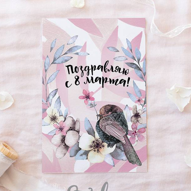 Открытка "Поздравляю с 8 марта - воробей с цветком"